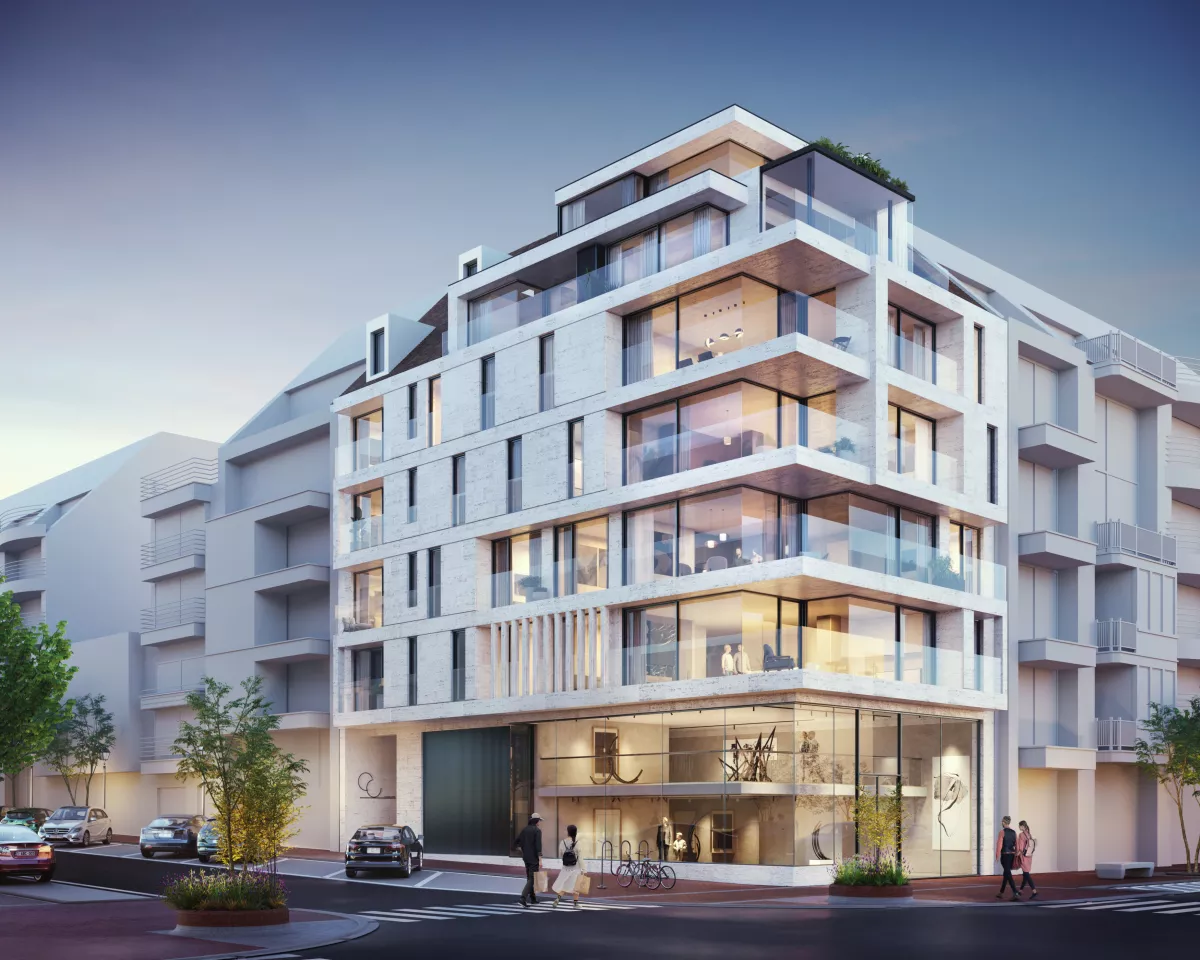 41 Queens Corner is een opvallend nieuwbouwproject in het hart van Knokke. De geraffineerde architectuur ontworpen door Piet Bailyu van Project Architecten omvat 10 appartementen en een handelsgelijkvloers . In dit hoekgebouw smelten vorm, functie en zichten samen op verfijnde wijze.